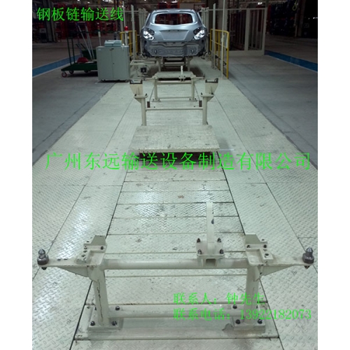 链板输送线是以大节距特种弯板链条为传送介质,带动金属或其它材料链板作循环往复平面运行的一种输送设备。由于线体结构及输送介质较为坚固,所以一般用在较重物品的输送和装配作业现场,每米的最大承重可达到500Kg。常用于各类摩托车、汽车总装部装及焊接生产线,各类制动器、发动机、起动机等装配。 工位数可以根据工艺要求设定,每个工位可配置电源插座,工具箱.