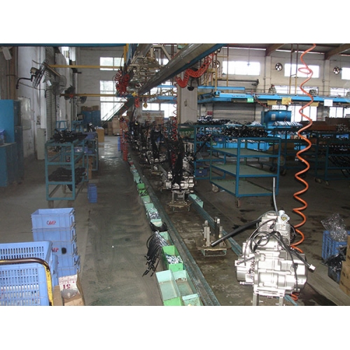 链板输送线是以大节距特种弯板链条为传送介质,带动金属或其它材料链板作循环往复平面运行的一种输送设备。由于线体结构及输送介质较为坚固,所以一般用在较重物品的输送和装配作业现场,每米的最大承重可达到500Kg。常用于各类摩托车、汽车总装部装及焊接生产线,各类制动器、发动机、起动机等装配。 工位数可以根据工艺要求设定,每个工位可配置电源插座,工具箱.