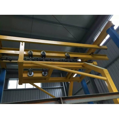 悬挂链输送线是在空间连续输送物料的设备,物料沿预订轨道运行,其轨道可在空间上上下左右布置,布置方式自由灵活,占地面积小,速度可以调节,十分有利于机械装配作业和喷涂烘干作业。单机输送能力大,可采用很长的线条实现跨厂房输送。结构简单,可靠性高,能适用各种恶劣工作环境。