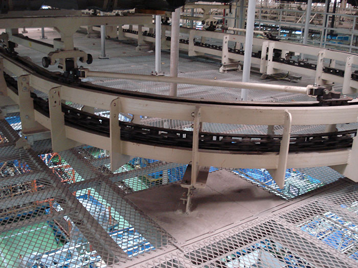 悬挂链输送线是在空间连续输送物料的设备,物料沿预订轨道运行,其轨道可在空间上上下左右布置,布置方式自由灵活,占地面积小,速度可以调节,十分有利于机械装配作业和喷涂烘干作业。单机输送能力大,可采用很长的线条实现跨厂房输送。结构简单,可靠性高,能适用各种恶劣工作环境。